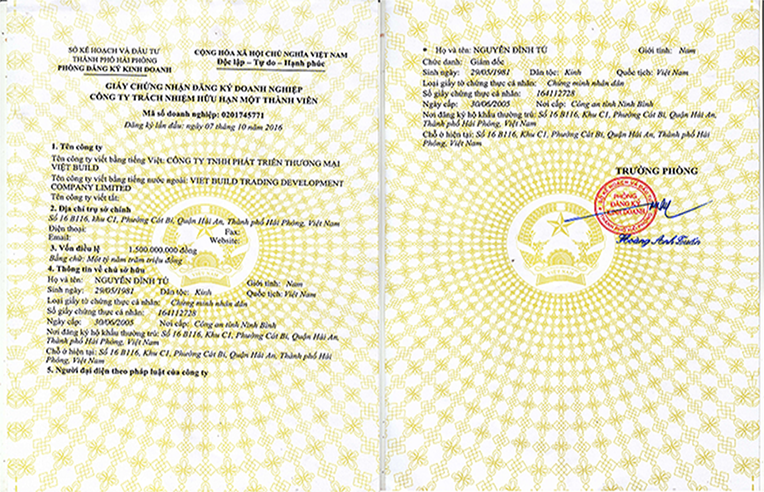 GIẤY CHỨNG NHẬN ĐĂNG KÝ DOANH NGHIỆP